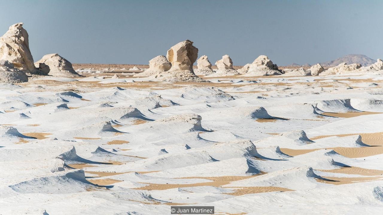 Sa mạc Trắng: Sau khi rời khỏi sa mạc Đen, quý khách sẽ tiếp tục tham quan một sa mạc với chỉ duy nhất màu trắng đơn sắc mênh mông. Quý khách sẽ có cơ hội được nhìn thấy rất nhiều những măng đá lấp lánh như pha lê – thứ mà tưởng chừng chỉ ở trong hang động mới có nay lại tồn tại ngay mảnh đất khắc nghiệt khô cằn sa mạc. Bên cạnh đó cả một khoảng rộng lớn ở đây đều có rất nhiều những cột đá hình cái nấm – thứ sẽ làm quý khách liên tưởng đến kỳ quan Cappadocia của Thổ Nhĩ Kỳ. Chính vì thế, khu vực này còn được coi là bảo tàng nghệ thuật đương đại ngoài trời.